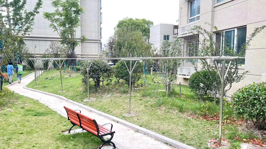 不少居民表明,搬了新居之后,寓居环境的确变好了,房子也住得舒适,但由于是30几层的高层建筑,考虑到安全要素,家中阳台外侧不能装置晾衣架,每当好天气想晒晒被子,只能拿到楼下,可被子抱出来后,小区里兜了一圈又一圈,仍是找不到适合的当地,野外拉绳暴晒也实属无奈。除此之外,许多居民也反映小区里没有歇息设备、健身器材等,在小区里漫步走累了,想歇一歇脚都没当地。