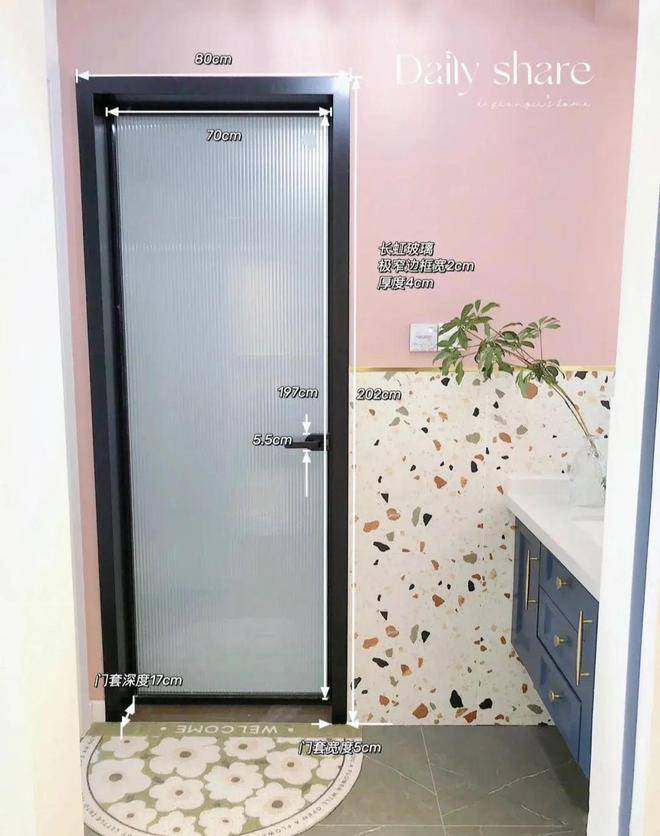 洗漱区是设计在卫生间门外的,避免了早上等厕所的烦恼,大幅度的提升了生活效率,粉色拼接水磨石墙壁,浪漫又充满了小清新的感觉,一个小小的空间都被屋主布置的这么漂亮,能够准确的看出屋主真的是一个对美有追求,生活很有品位的人。