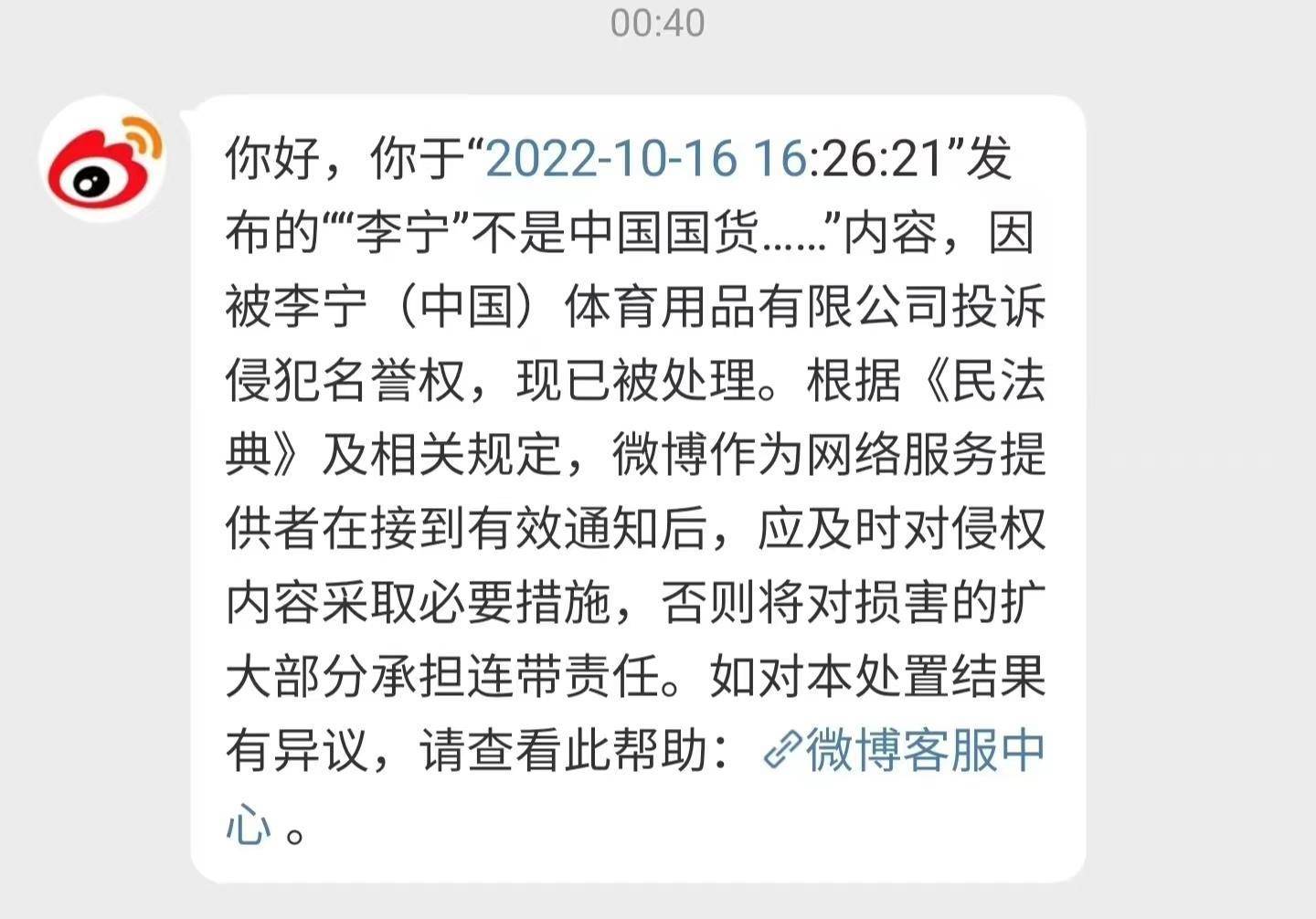 另一方面,李宁假装不知道那件事,既没有抱歉也没有宣布相关声明。 一起,李宁在网上各大渠道纷繁告发网友批判。 其理由竟然是“侵略名誉权”。