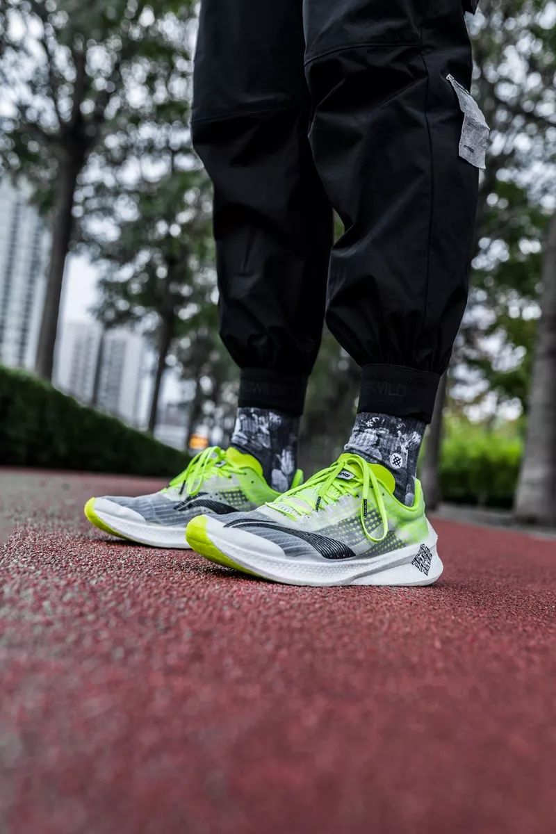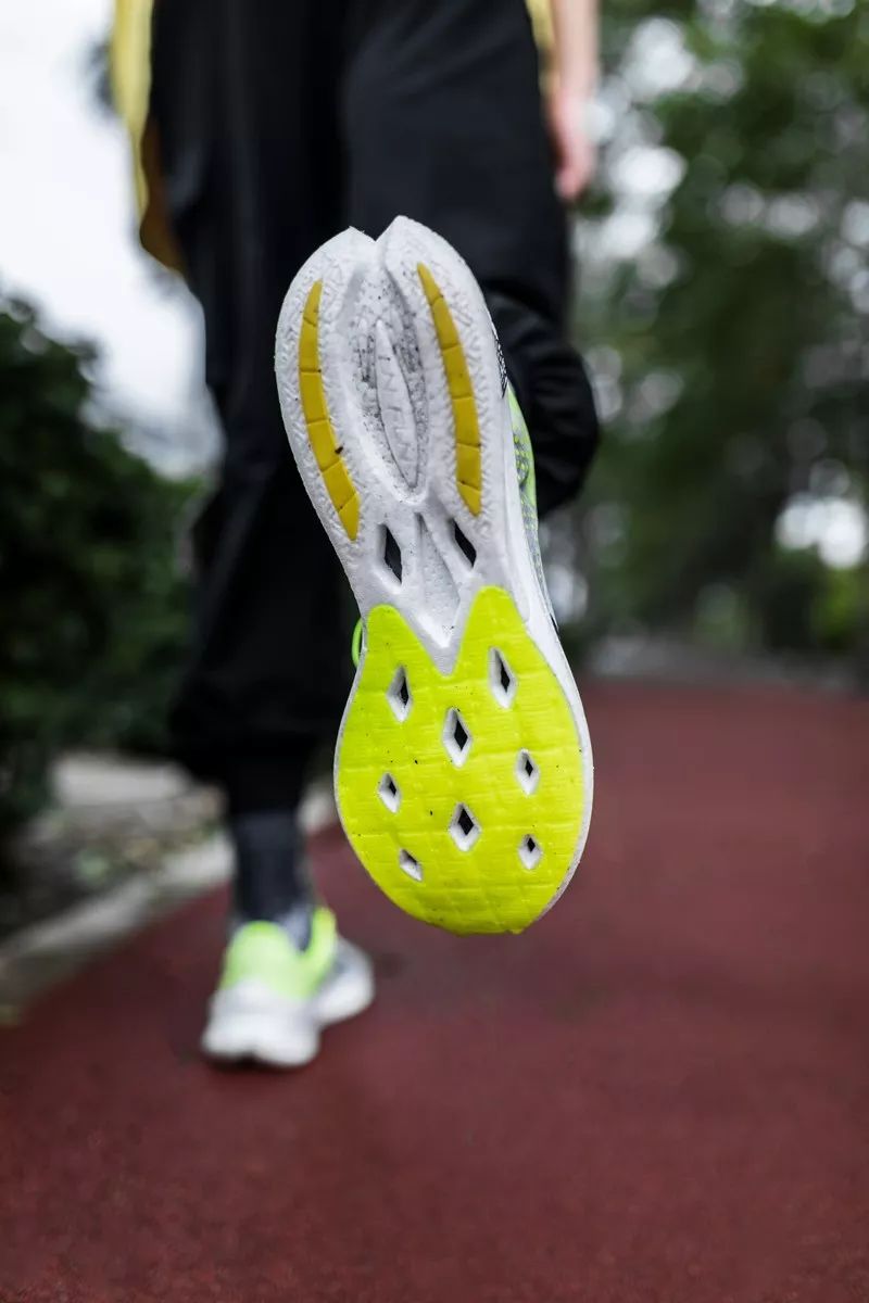 真实跑起来,在前掌蹬地的瞬间,全掌碳板使回弹瞬间完结,构成极致的推动感。