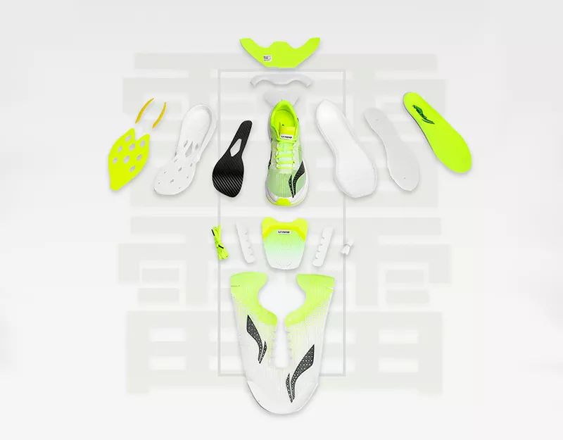 在官宣「䨻」的成功研制的一起,本周李宁也发布了首双搭载「䨻」科技的尖端马拉松跑鞋
