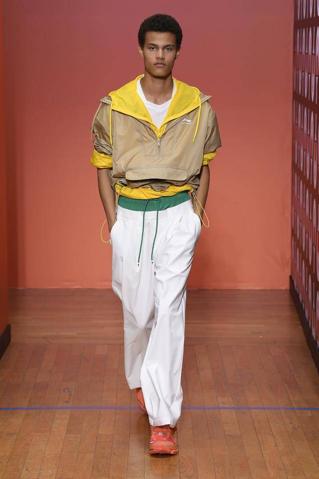 在运动装的规划上,能够袖部抽褶、腰部抽褶、部分抽褶等,让服装愈加百变。本季李宁的长款大衣,便能够终究靠抽绳完成“男女共穿”——若抽绳天然松懈,男生能够将它当外套穿;若系紧抽绳,则变成了运动复古风的裙装。