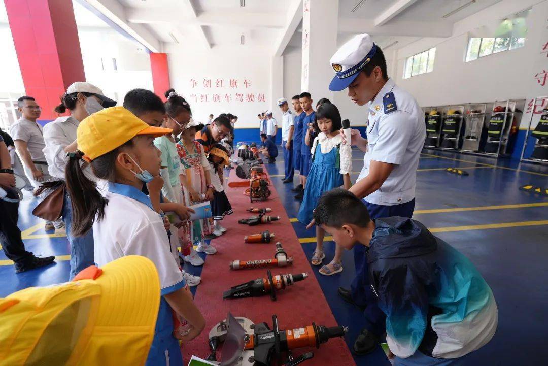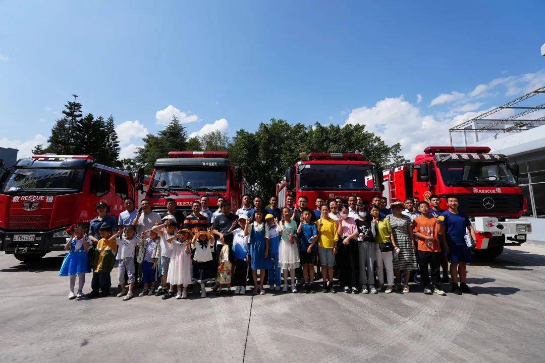 都说孩子关于生疏事物都是猎奇的,这些小朋友们也不破例,一个个都是猎奇宝宝。走进营区,“奇形怪状”的配备和霸气十足的水罐消防车、登高消防车、涡喷消防车......深深地吸引着小朋友们的眼球,瞬间就收成了一批“小迷弟”“小迷妹”。