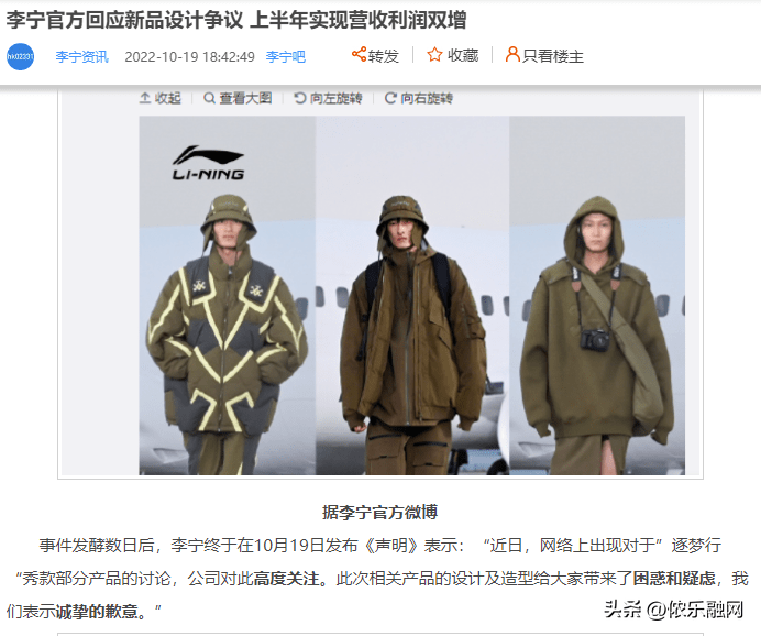 李宁是为国争光的体操运动员,其成立服装公司是商业行为,业绩有起伏是正常的现象,但如期官方微博对于服装设计的解释,和所包含的文化传统涵义却让人感到牵强。如果说旗袍和唐装是代表的中国民间传统文化因素,那么一个古代的头盔有中国元素符号么?还飞行员,中国古代没有飞机,是善飞的民族么?别愚弄大众了,如此的飞行员只有二战时,才大规模地出现在战场之上,出现在新闻报道和影视作品中。光凭你一个公司的寥寥几个字就能改变国人的普遍认知么,给人的印象就是日本飞行员的军服么,穿出去的话,在大街上会不会挨揍,都是很难说的事情。这是销售额超过200亿的傲慢吧,评论区的翻车情形已经说明了一切。