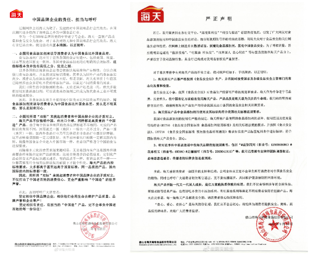 吊诡的是,海天的回应同样打出了民族牌,声称这是对“中国造”产品的恶意攻击。